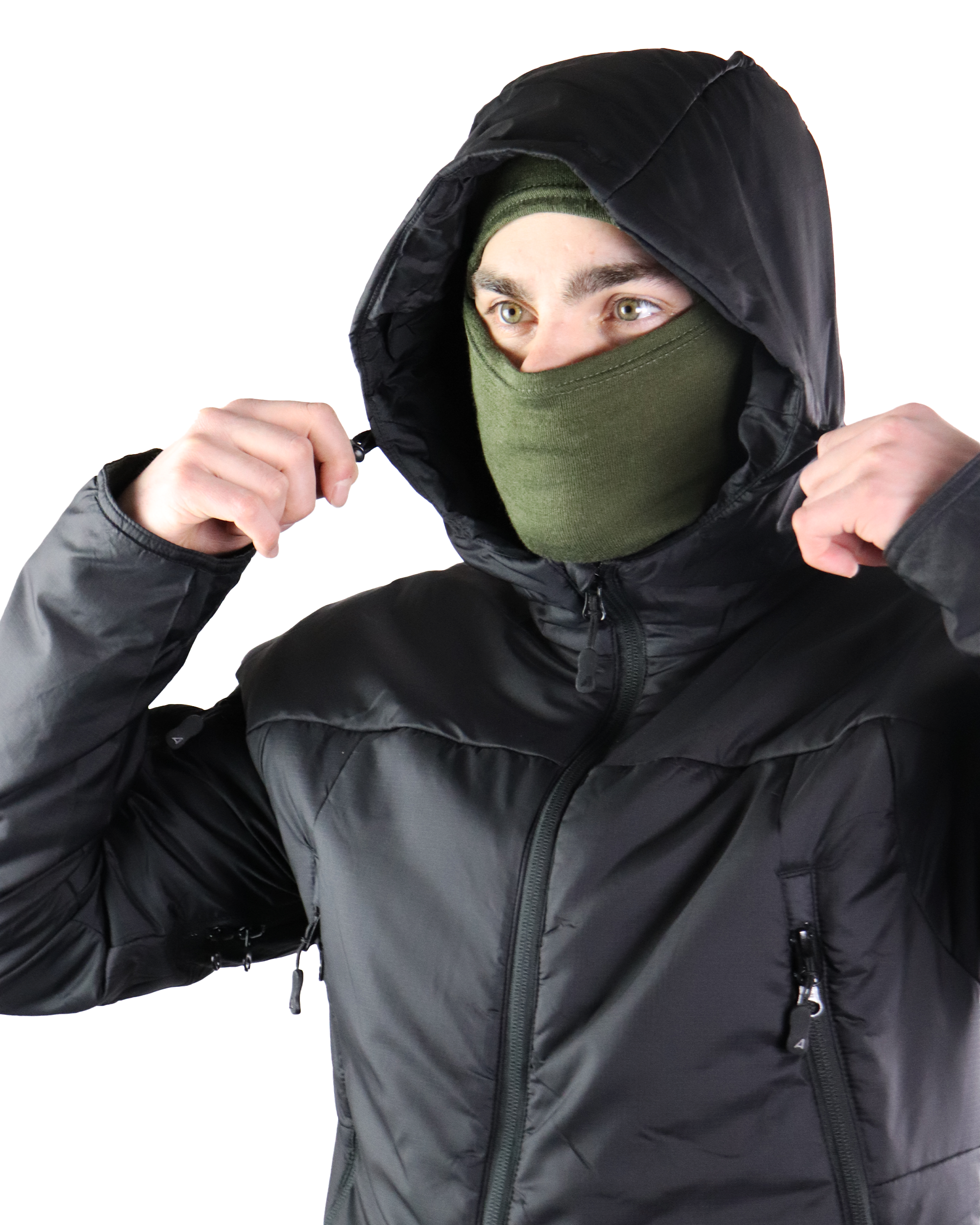 The two front pockets feature concealed adjustment points that allow for easy use without the risk of them interfering with weapon draw. The spacious hood can be fully adjusted across three points to give maximum control over fit.
